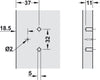 • Adjustment facility: With lateral adjustment from -2 mm up to +1 mm via side partWith height adjustment from -2 mm up to +2 mm via cup excenterWith depth adjustment from -1 mm up to +1 mm via long holes in side part