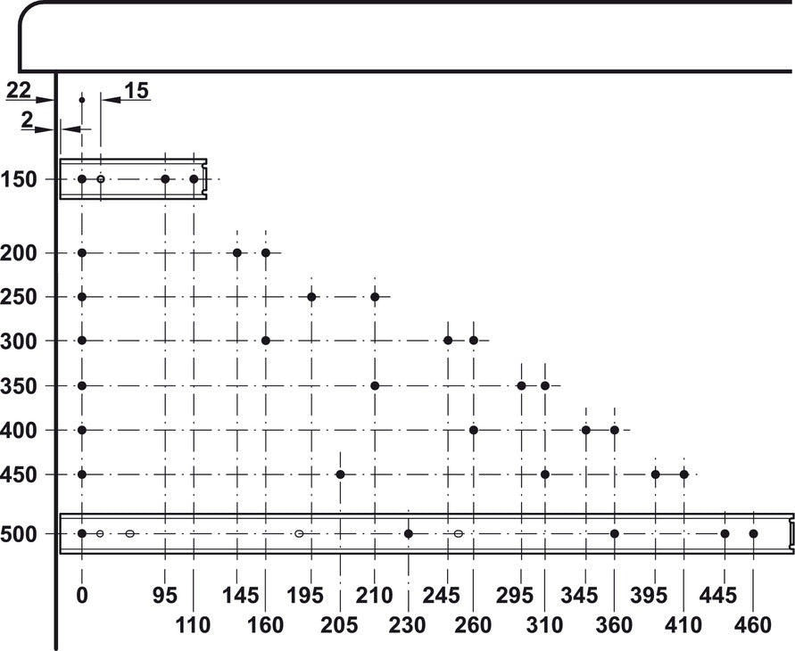 2431 BB Drawer Runner Full 13kg 500mm BZP