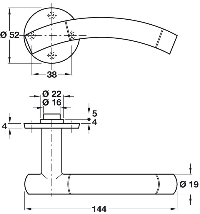 - Diameter √ò: Handle: 19 mmRose: 52 mm