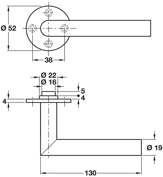 - Diameter √ò: Handle: 19 mmRose: 52 mm