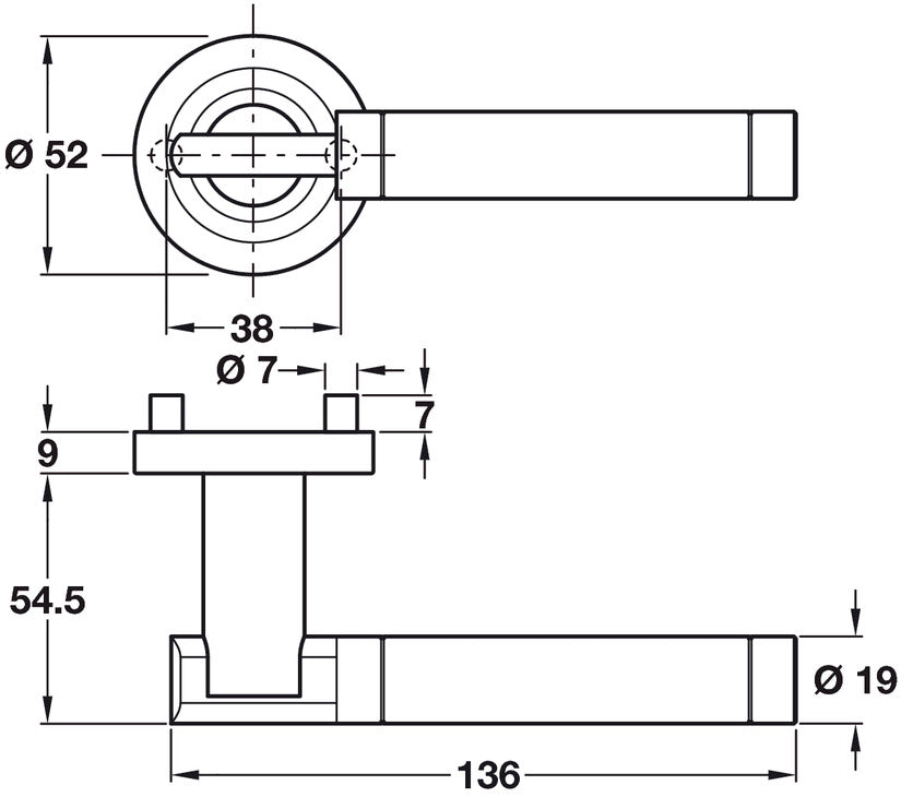 - Diameter √ò: Handle: 19 mmRose: 52 mm