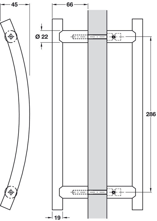 - Hole spacing: 286 mm