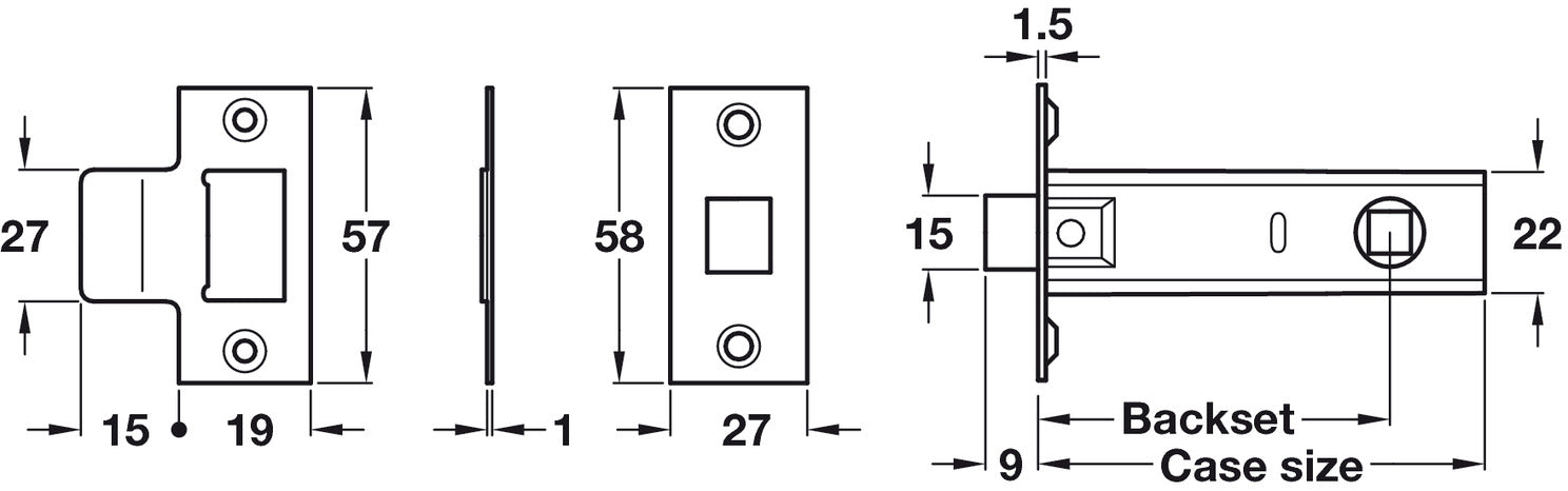 - Supplied with: 2x Hinges, 76 mm, zinc plated1x Tubular latch, 64 mm, nickel plated1x Lever latch handle, satin aluminium