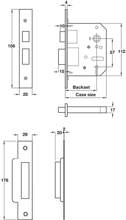 - Supplied with: 3x Hinges, 76 mm, chrome plated1x 5 Lever mortice lock, 64 mm, nickel plated1x Lever lock handle, chrome plated