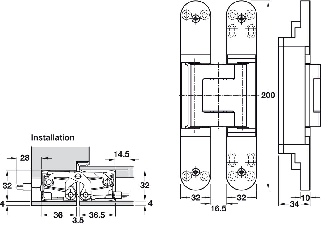 - Adjustment facility: 3-way continuous adjustment: Vertical: ± 3 mm, Horizontal: ± 3 mm, Depth: ± 1.0 mm