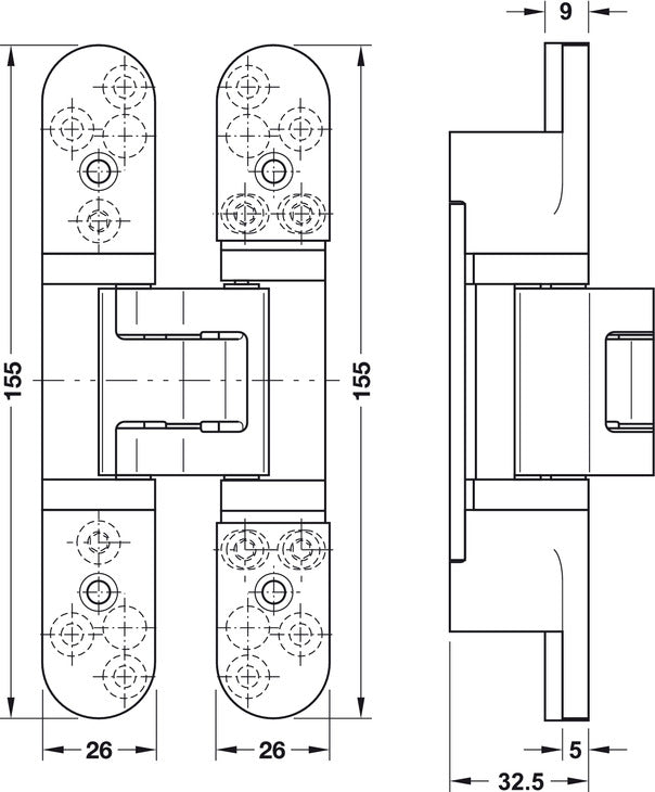 - Adjustment facility: 3-way continuous adjustment: Vertical ± 3 mm, Horizontal: ± 3 mm, Depth: ± 1 mm