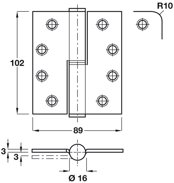 ANSI hole pattern (template drilled)Grade 14 BS EN 1935Maintenance free oilite bush bearings25 year manufacturer’s guaranteeCertifire approved; certifire no. CF351Fire rated 30 & 60 mins