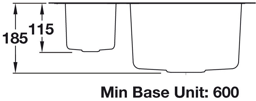- Dim.: Overall size: 580 x 450 mm. Main bowl 340 x 400 mm. Second bowl 160 x 300 mm. Bowl depth: 185/115 mm