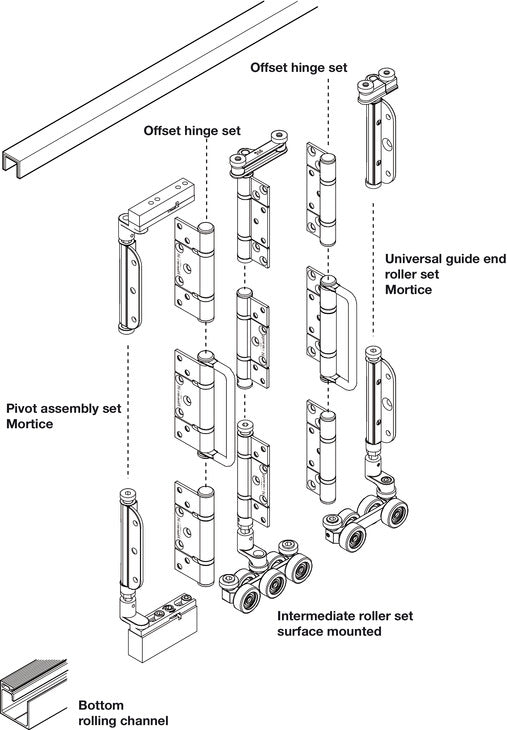 High quality folding door system for bottom rolling doors weighing up to 80 kgIdeal for applications where top hung support is limited e.g. conservatories, out buildings and extensionsMade in the UKFull security and weather testing has been carried outThe precision bearing system allows even very heavy doors to move quietly and easilyBottom roller situated directly underneath the door making the hardware and bottom profile barely visible when doors are closedHigh security visibleSevere weather resistance test details are available on requestMaximum corrosion resistanceEnd folding timber doors folding to one or both sidesStandard folding configuration features doors folding outwardsConcealed top guide channel to enhance appearancePrecision bearings top and bottom to reduce rolling resistanceCycle tested to over 100,000 cycles, according to EN 1527:2013