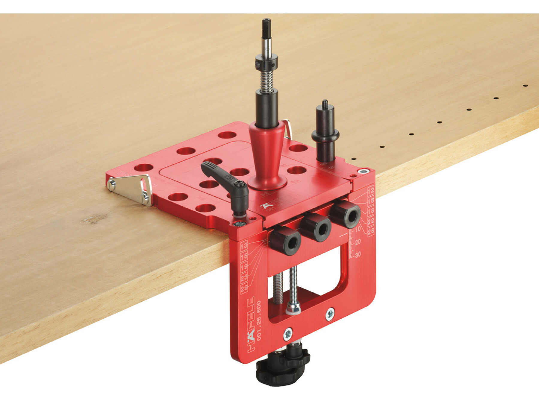 Drilling jig for all furniture connectors and the most popular furniture fittings from Häfele