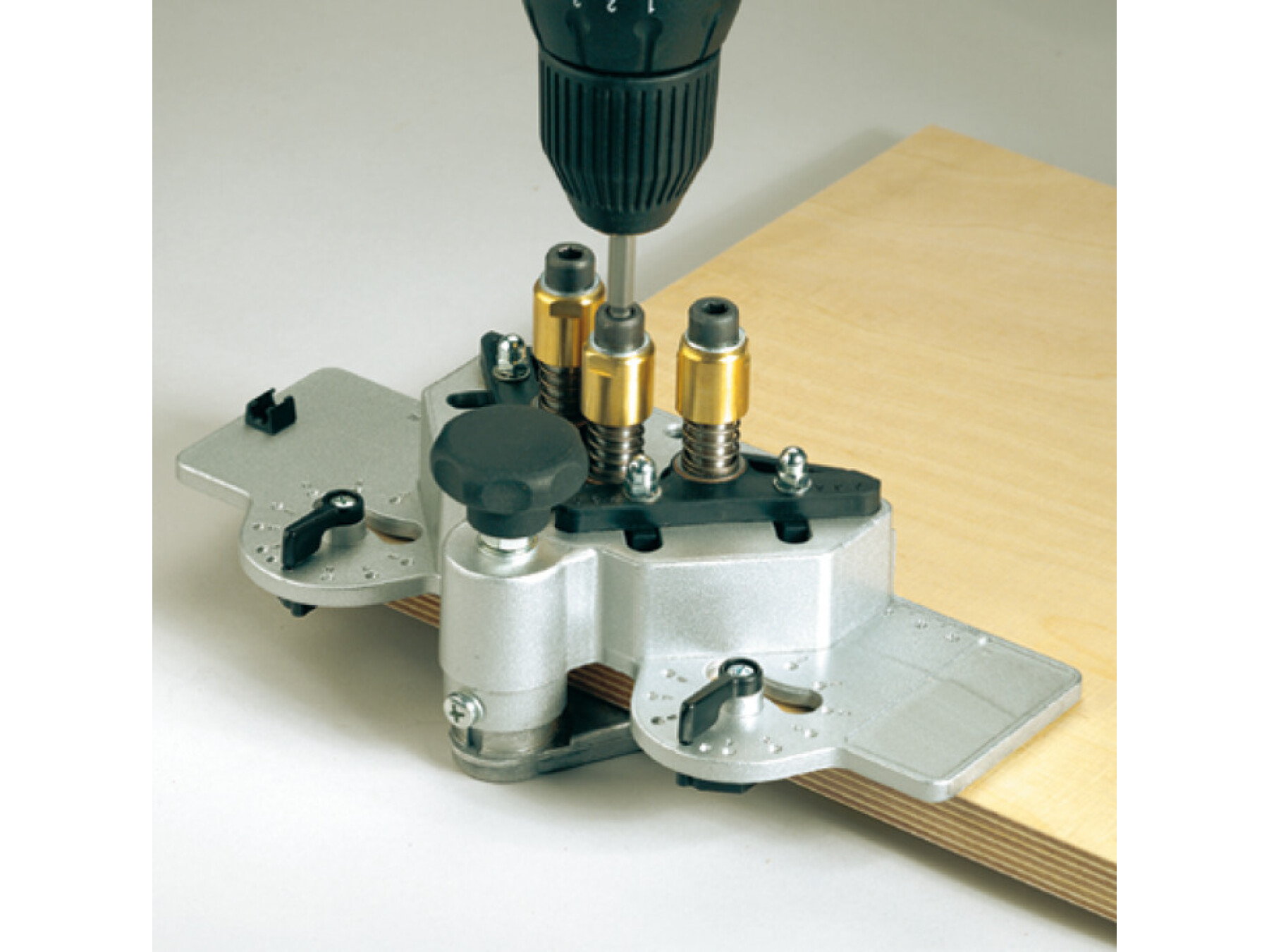 For drilling holes for hinges with either screw fixing or pre-mounted Euro screws