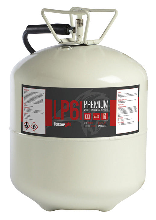 - Features: TensorGrip LP61 is a web spray, superior contact adhesive developed to provide exceptional performance. Very fast application, ultra high temperature resistance. Very high solids. Totally portable, requires no external power source. Non-flammable adhesive, easy application, minimal cleaning. Lifetime guarantee. Available as aerosol can or canister