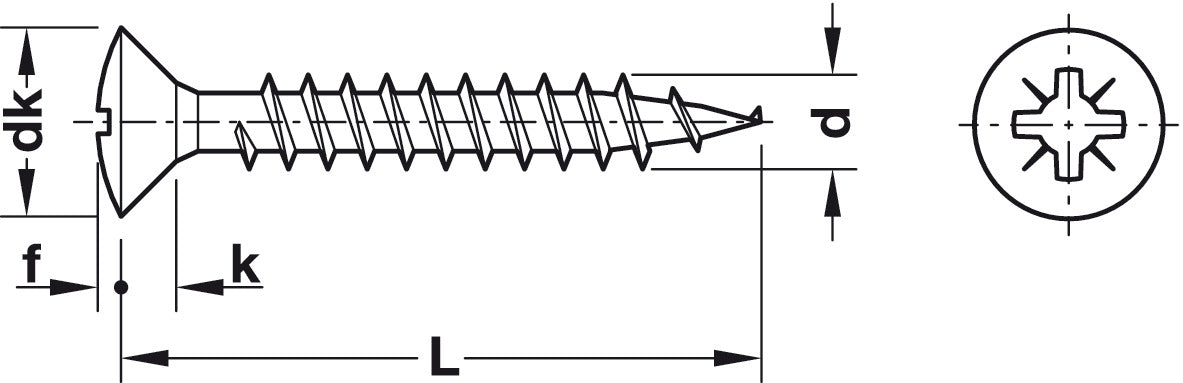 - Hospa Screw, Chipboard, Raised Head, with PZ Cross Slot, Fully Threaded