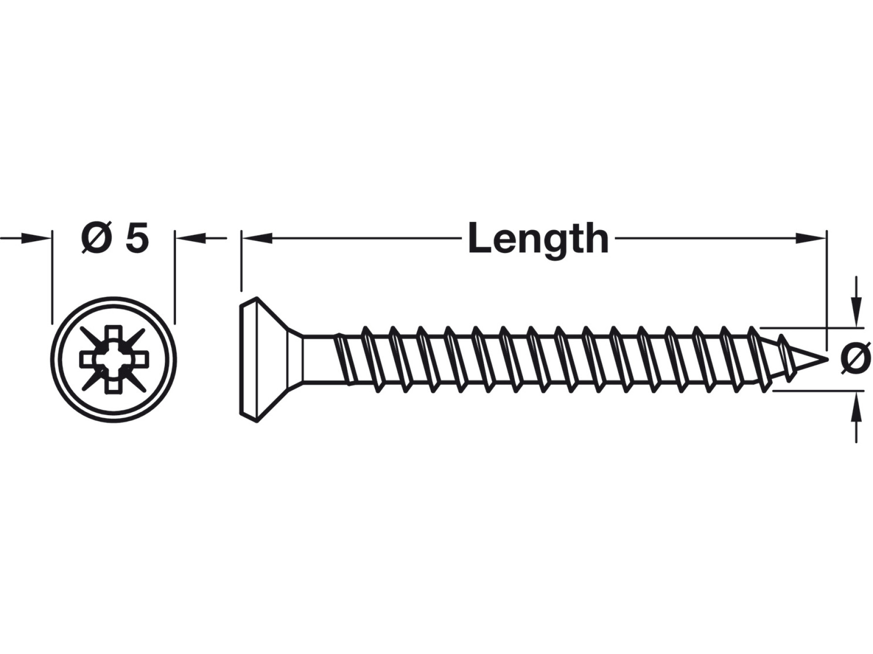 Countersunk head with PZ cross slot Technical data Thread Ø 3 mm Head Ø 5 mm Drive size PZ2