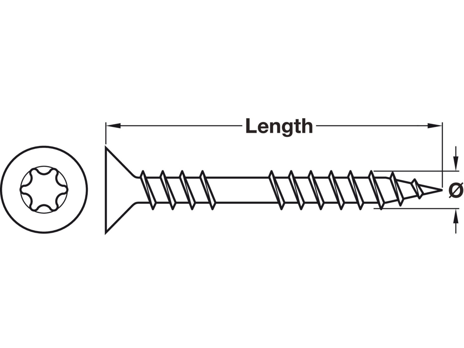 Countersunk head with T star Technical data Thread Ø 4.5 mm Drive size IS20