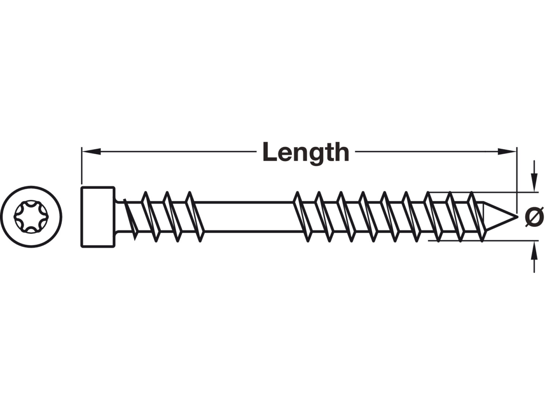 Maximum wood thickness 30 mmCylindrical head with T starWirox coated Technical data Thread Ø 4.5 mm Drive size TS20