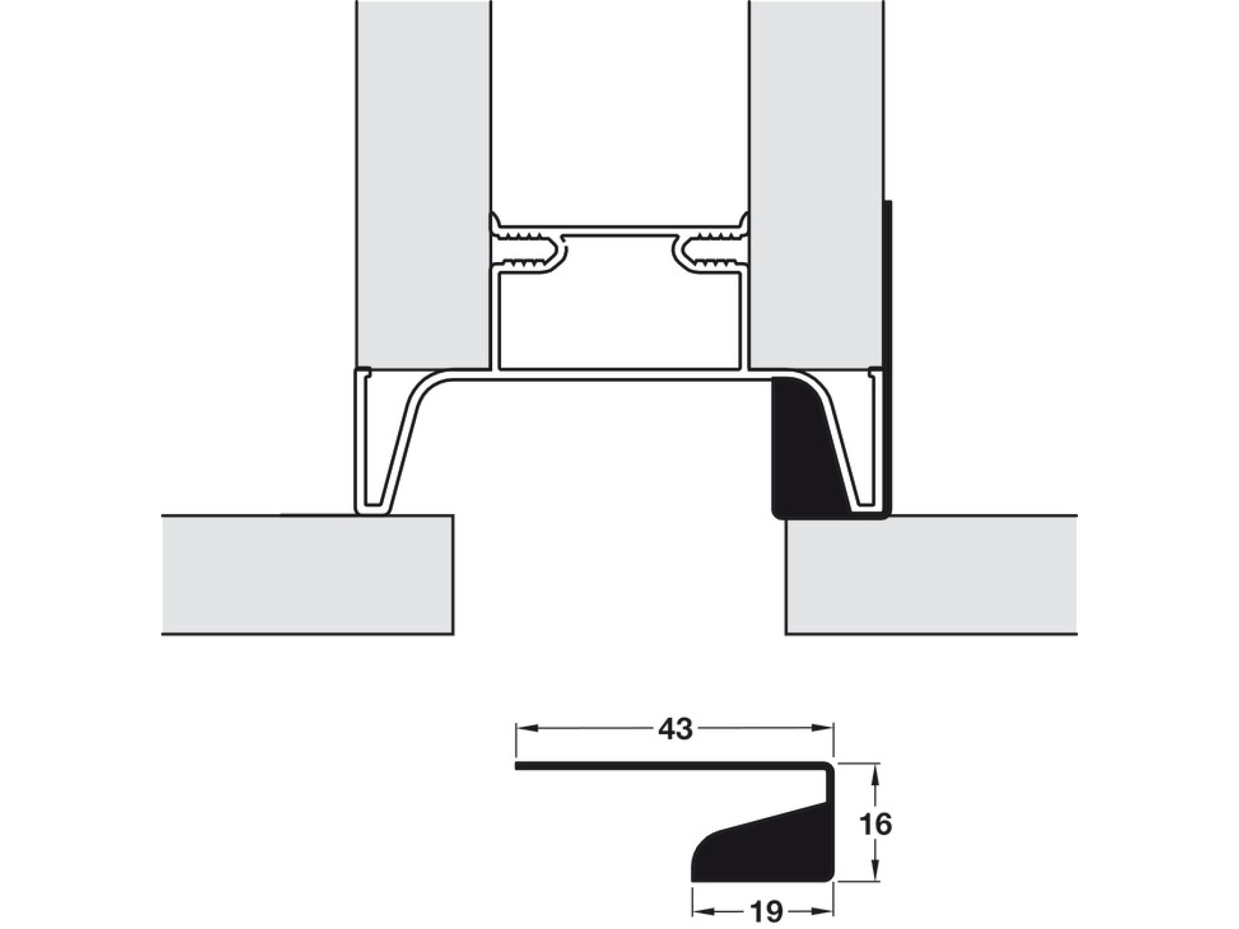 This GOLA profile is for vertical fixing between the cabinet and the oven to give a sleek finish to the cabinet. It can be used in conjunction with the Gola System E end profile which is applied to the cabinet already in the diagram.