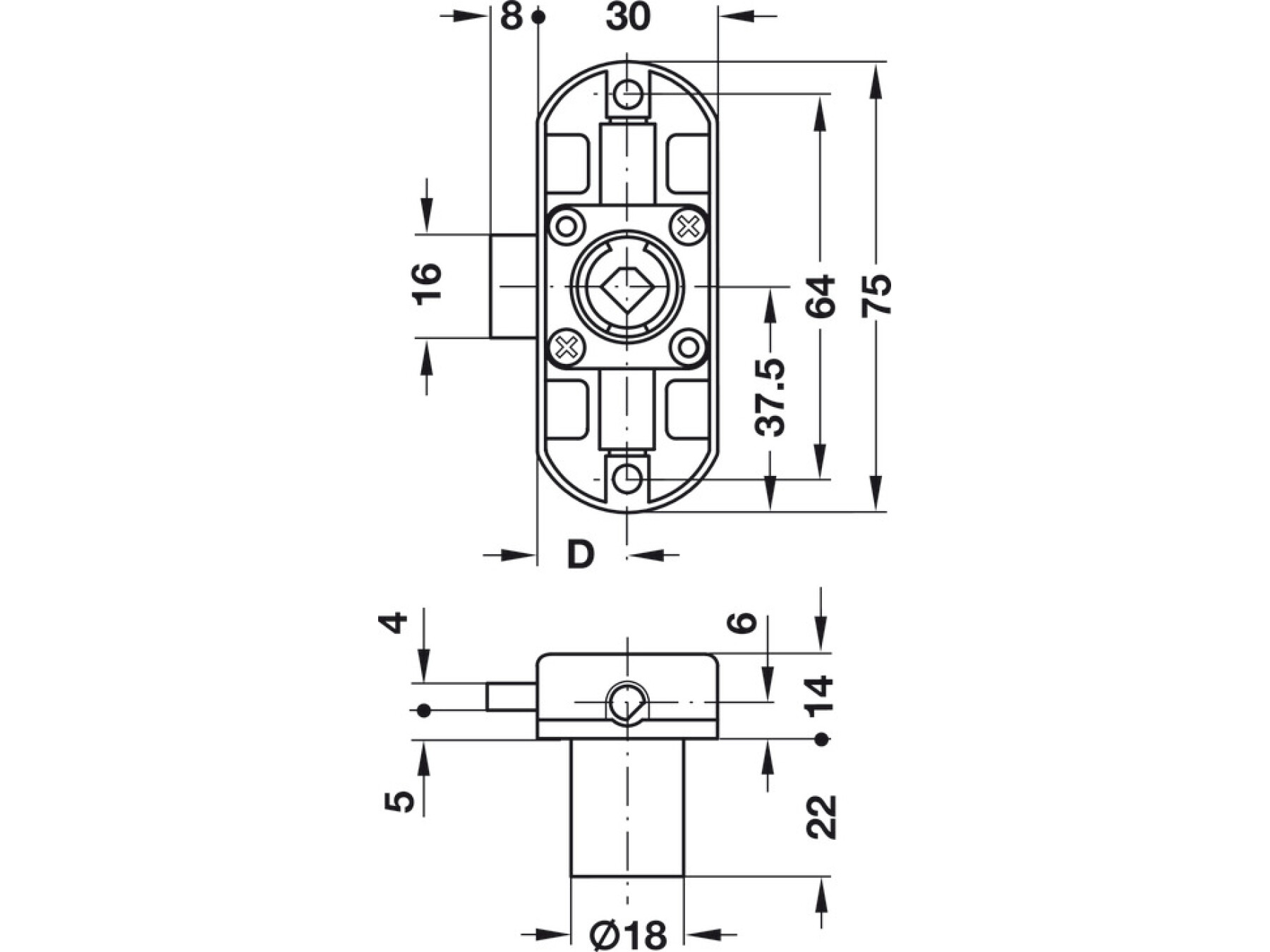 With the existing internal cabinet height ⓒ and installing the espagnolette lock at half height, the upper rod dimension is ⓐ and the lower rod dimension is ⓑ. Housing centre ⓓ – 25 mm