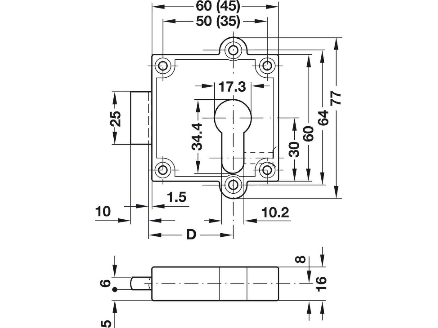 1 Dead bolt rim lock