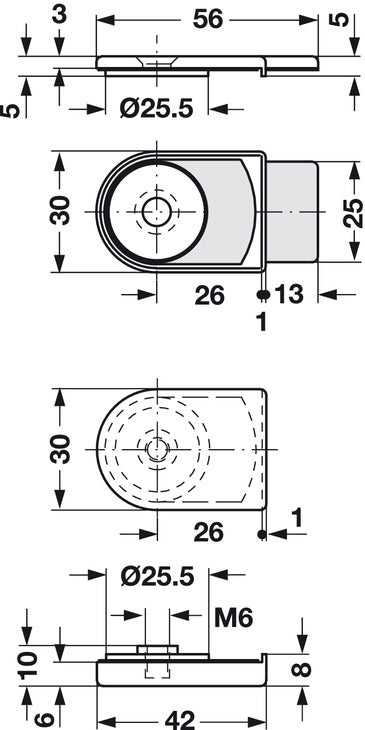 - Supplied with: 2 front panels, blank1 threaded screw M6 x 10 mm (for glass thickness up to 8 mm)1 threaded screw M6 x 12 mm (for glass thickness up to 8–10 mm)
