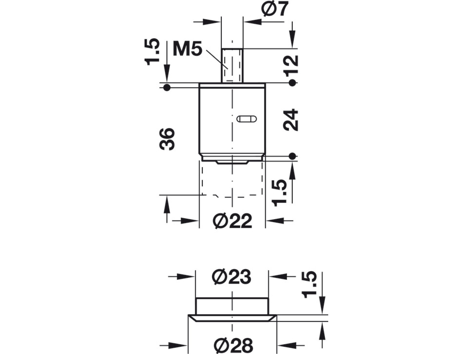 Locking pin with M5 internal thread