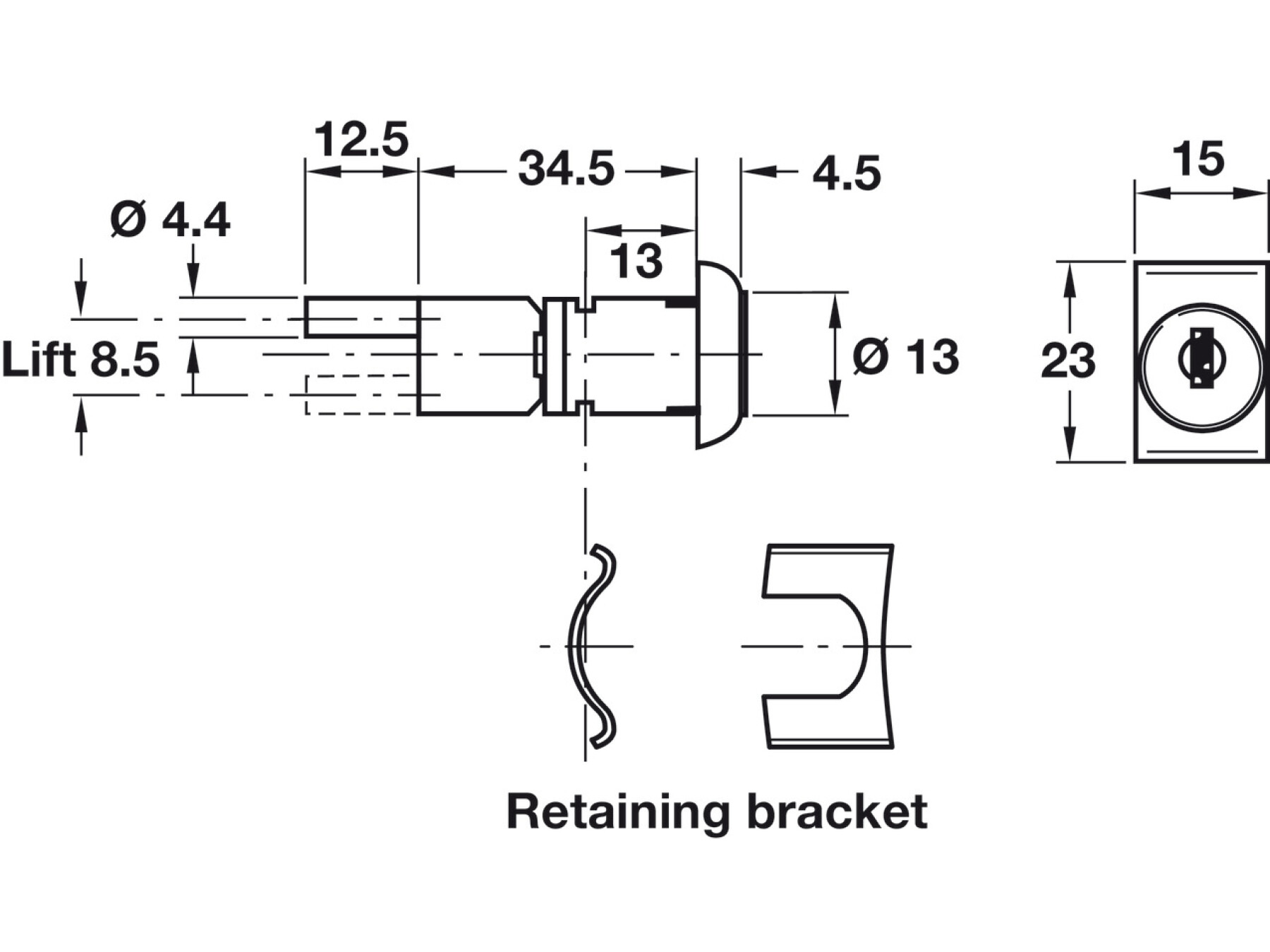 Indirect actionKey closure travel 180Lifting pin closure travel 180°Key can be removed in locked or unlocked... Read More