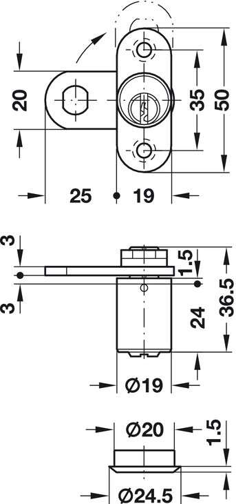 Cylinder CamLock w Trap D19mm H1 Dir.B