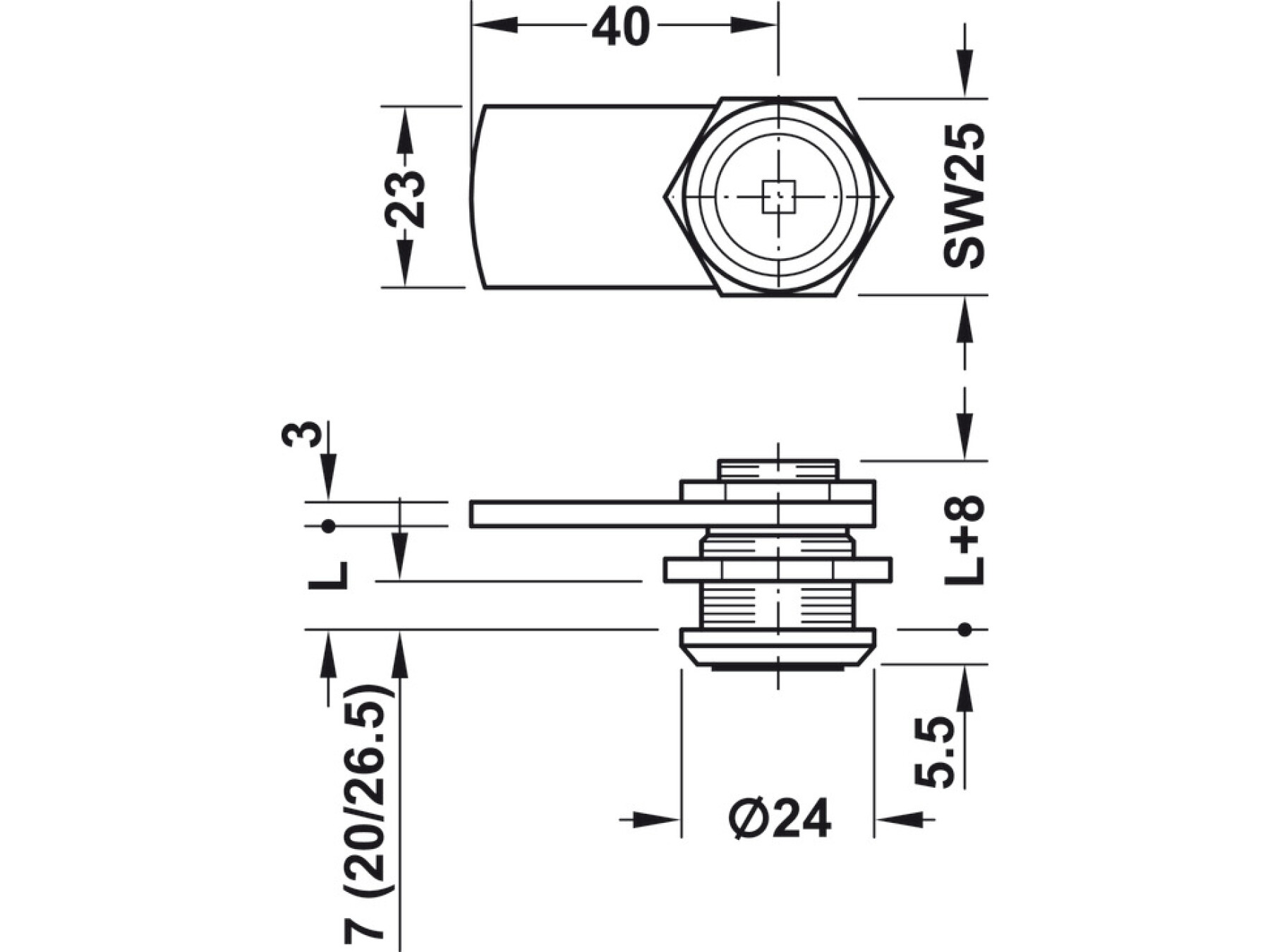 For screw fixing with hexagonal nut (hole pattern 19.7 x 17.5 mm)