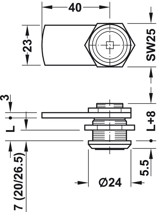 - Installation: For screw fixing with hexagon nut (hole pattern 19.7 x 17.5 mm)