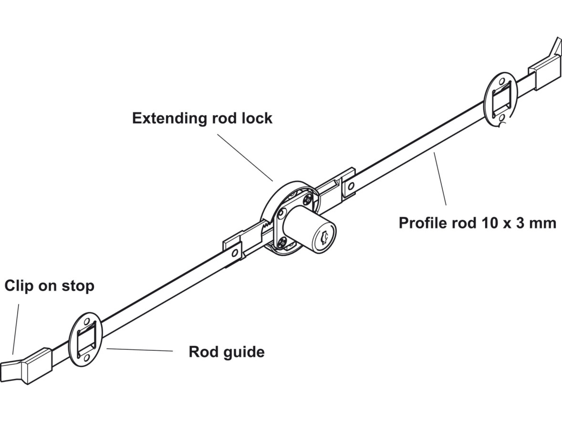 Extending rods, rod guides and clip on stops are not supplied and must be ordered separately