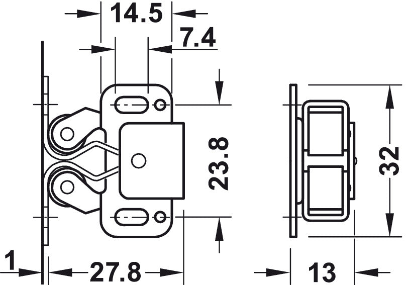 - Twin Roller Catch, for Screw Fixing, Spring Loaded, Steel