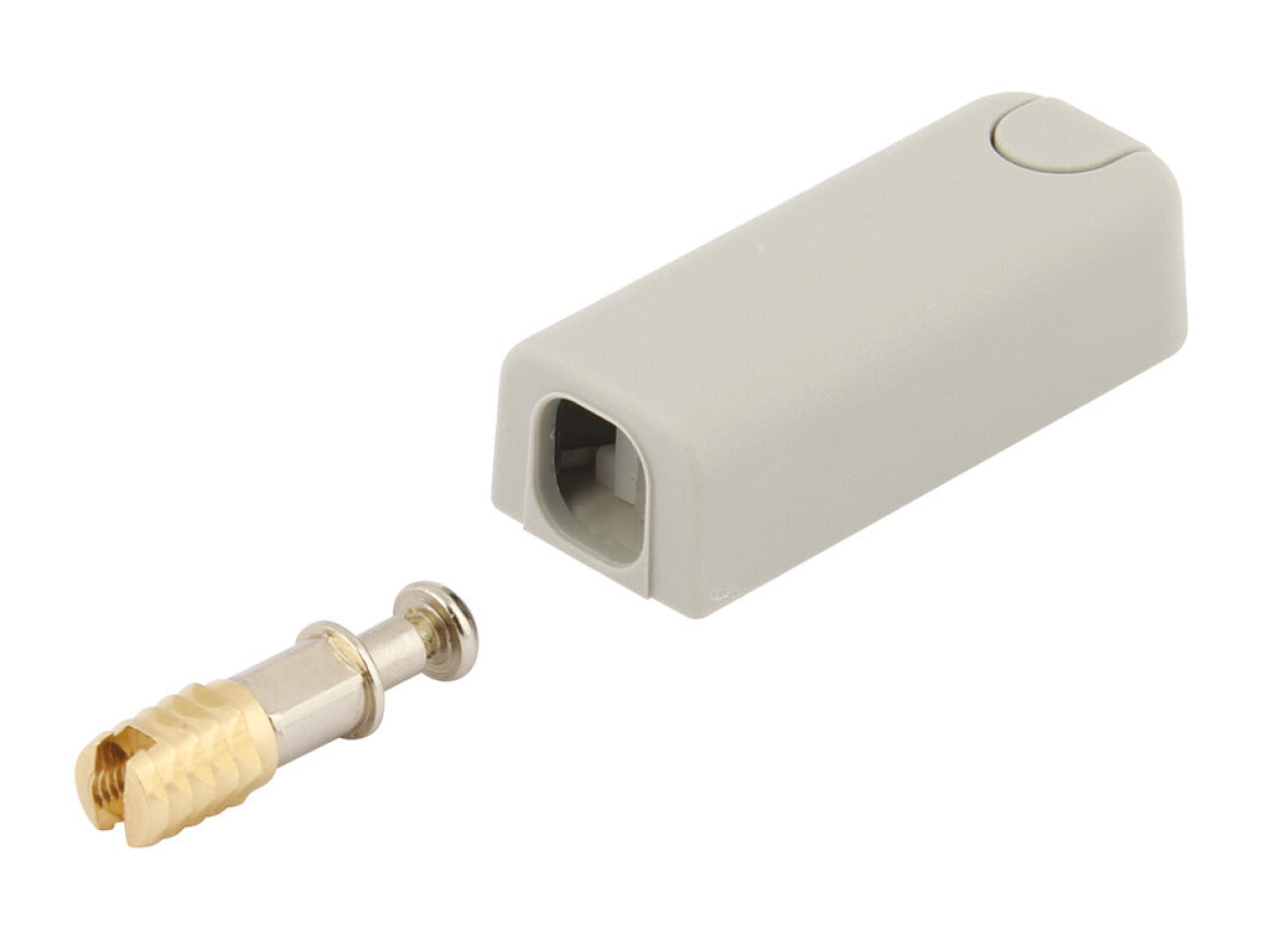Catch plug fits into Ø 5 mm hole and screw fixes to cabinet floor