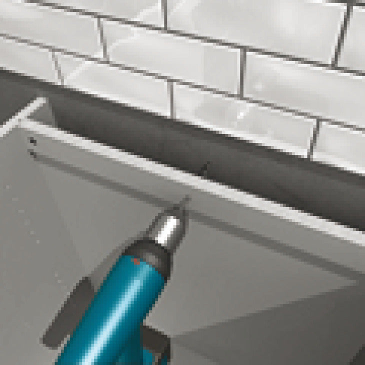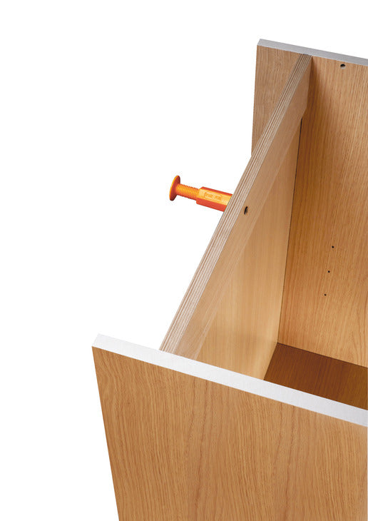 A simple method to secure units to the wall. Bridges any reasonable gap. Quick, simple and accurate. Only one screw and fitting normally required. Fewer fixing points required. Flexible positioning using the entire cross brace, avoiding bad plaster, cables and pipes or line up with wall studs. Enables a good fit even on uneven walls. Suitable for most fitted furniture. Accessible after install. Eliminates the need for L brackets
