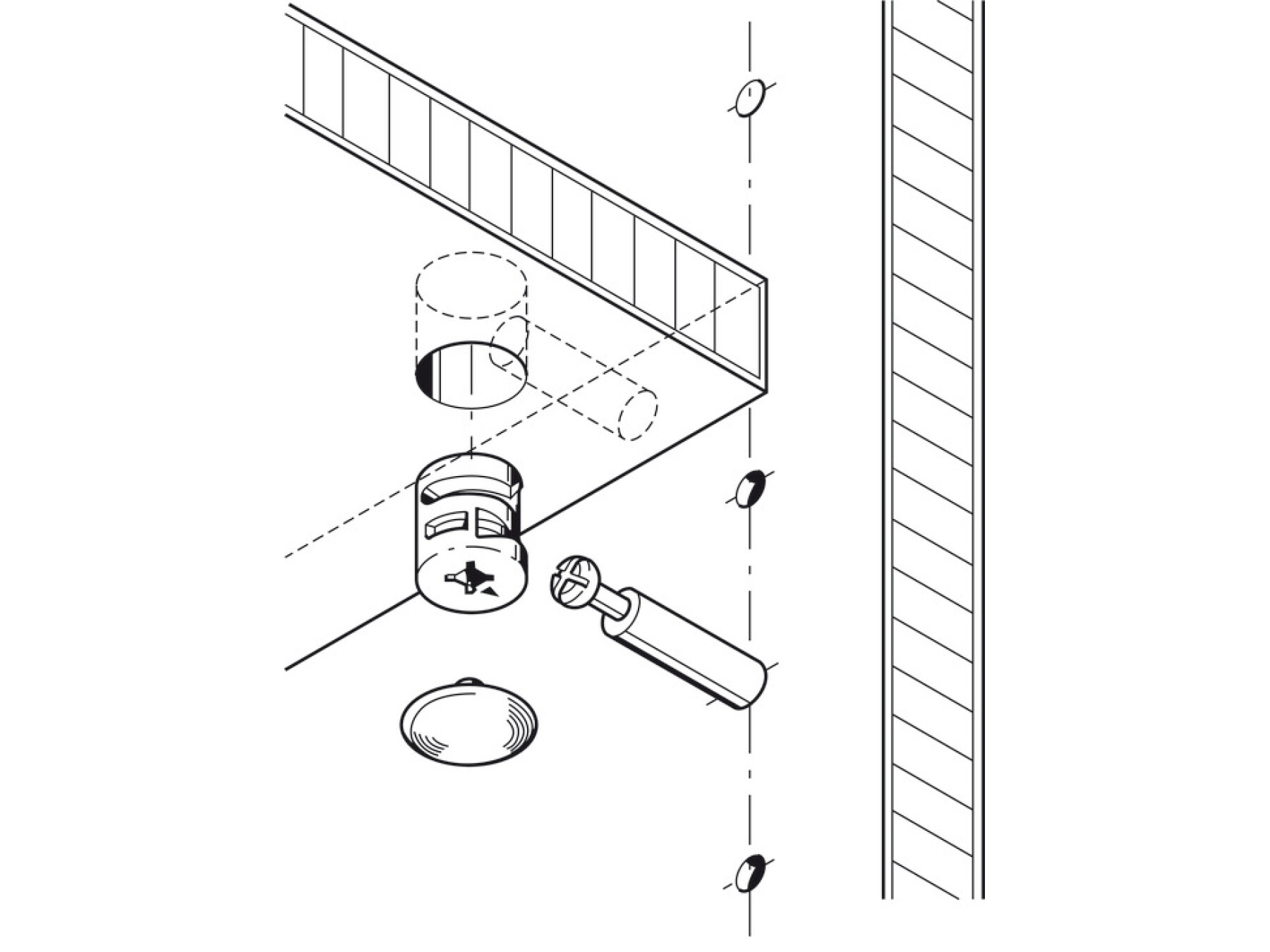 Red jig & Unitool drilling jig for Minifix 15 housings and Variantool-N drilling jig for series-drilled holes for connecting bolts are available if required
