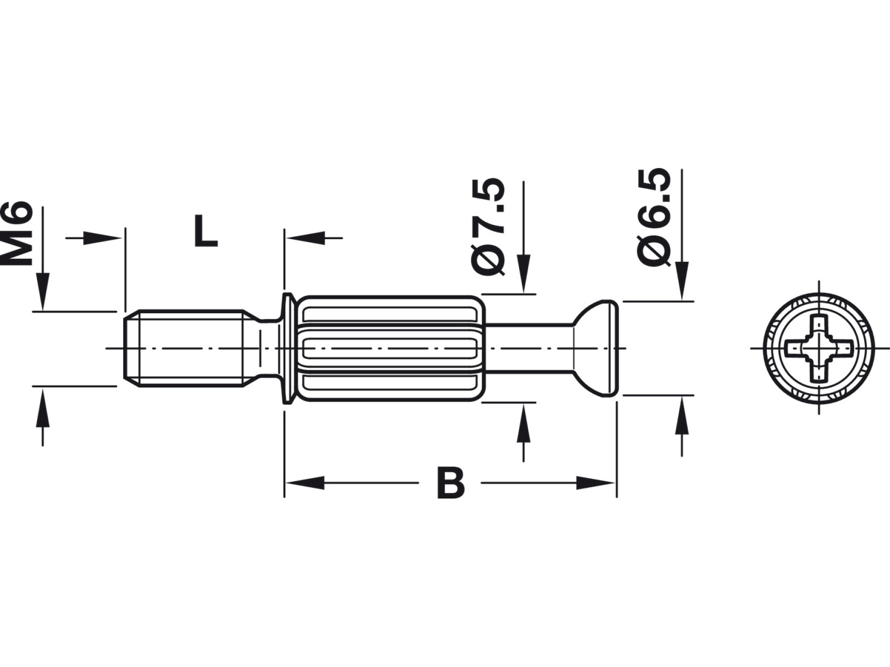 With M6 thread for screwing into sleeves or dowels for installation in Ø 8 mm or Ø 10 mm holes
