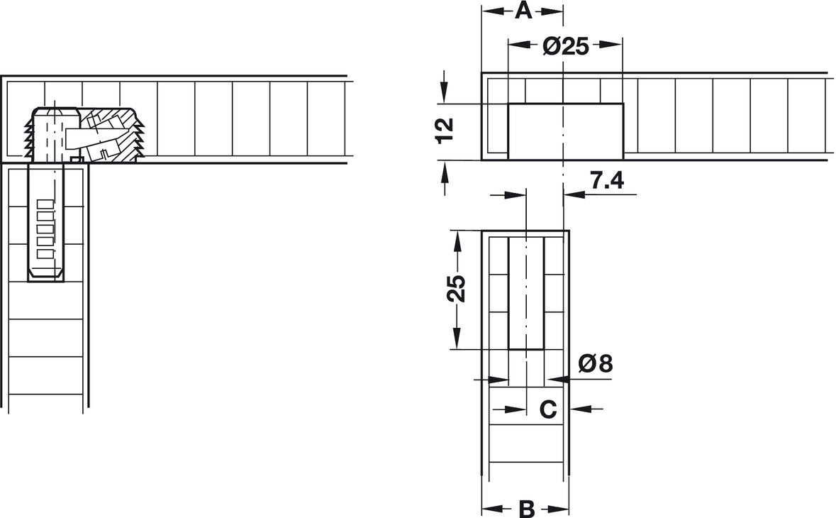 - For wood thickness: 18 and 25 mm