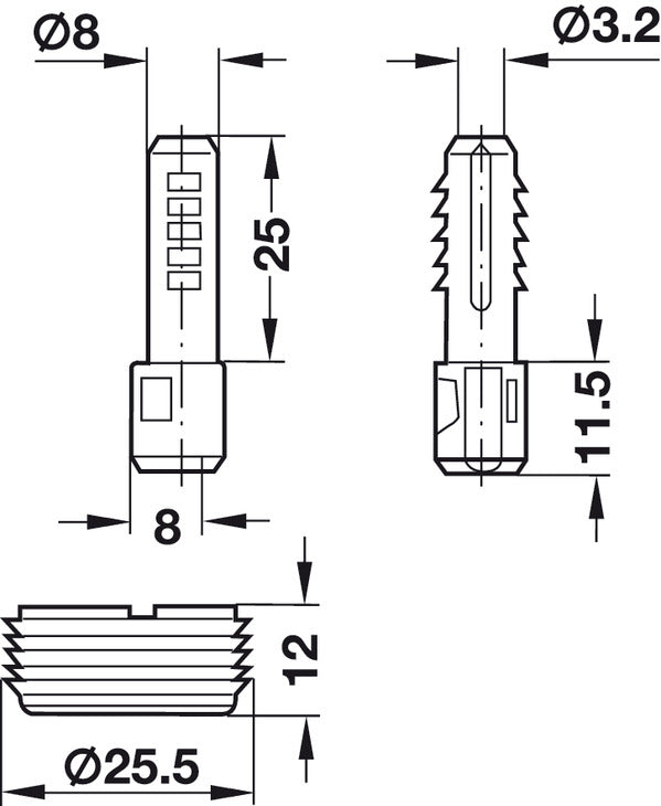 - Material: Dowel with moulded plastic stub and plastic housing with metal locking screw Spreader pin: Steel