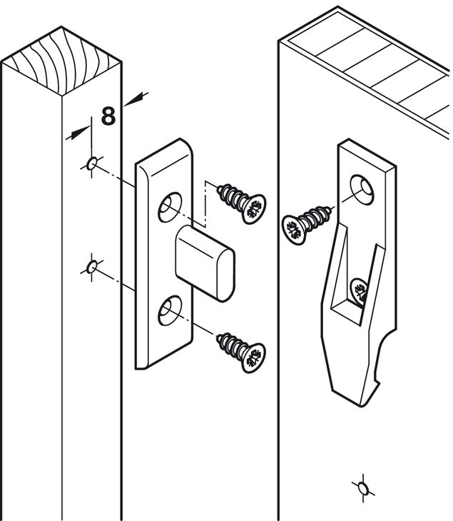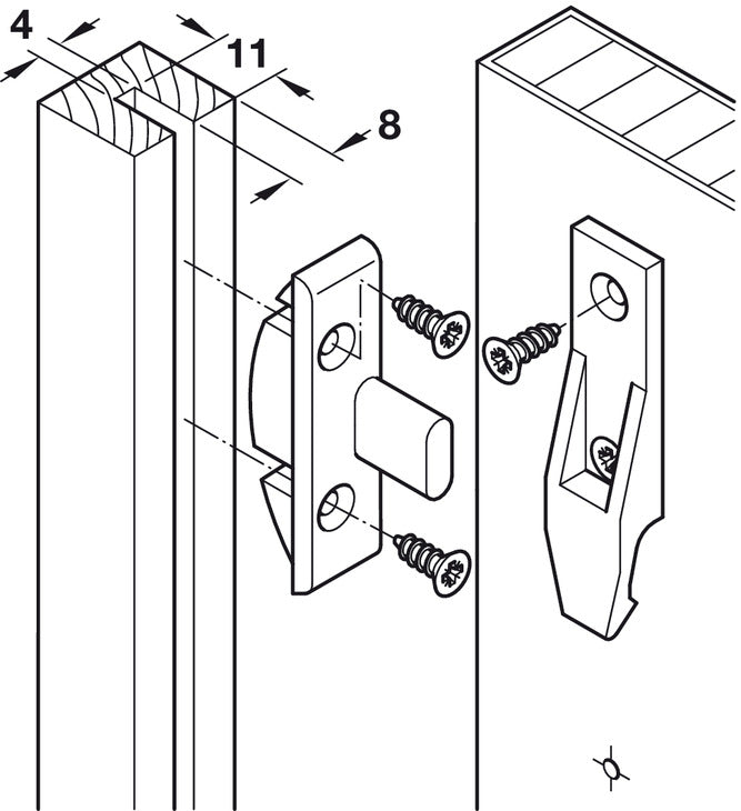 - Application: For fixing panels to frame constructions and supporting profiles of the Hafele Keku R room system