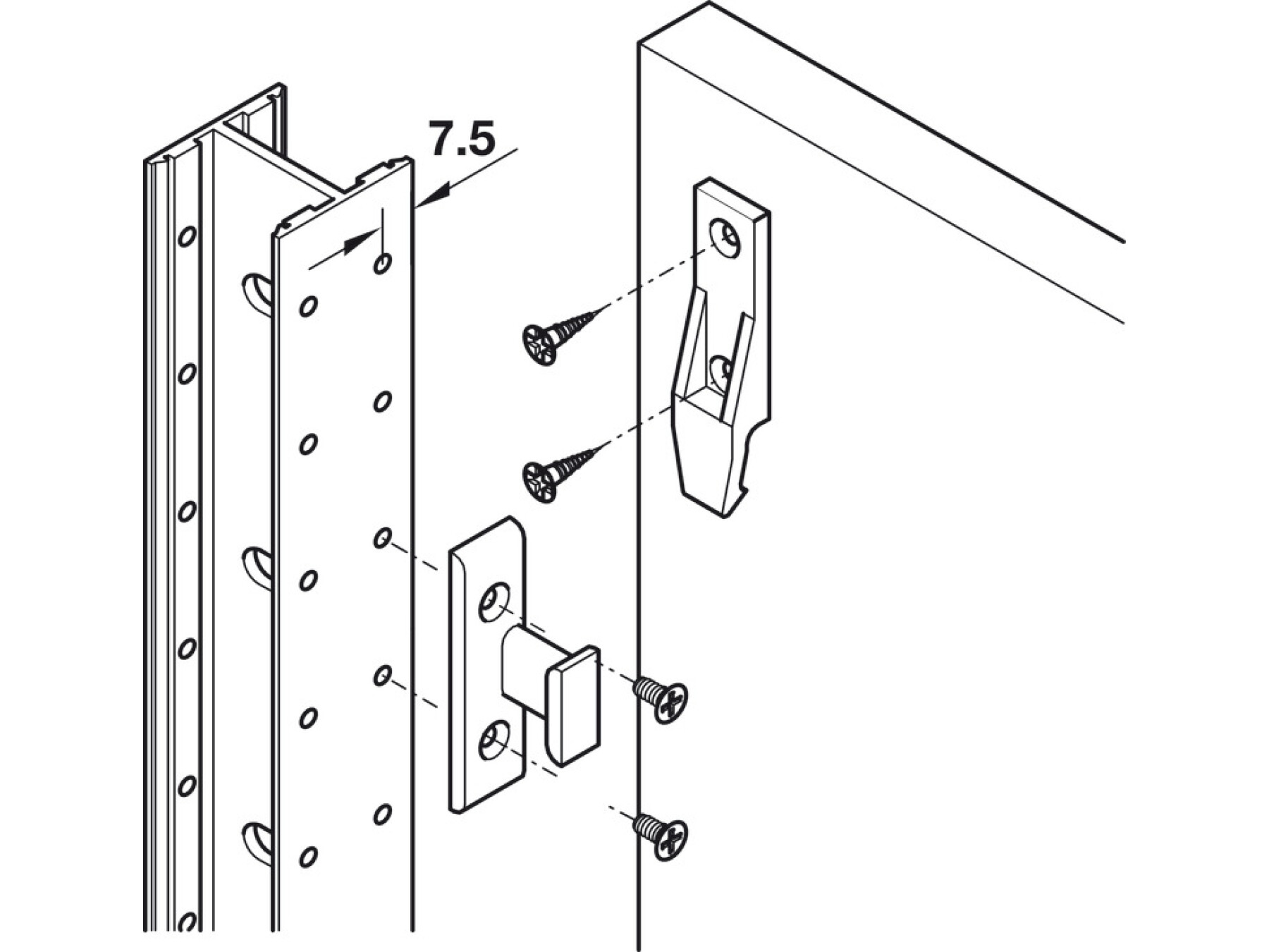 For fixing panels to frame constructions and supporting profiles of the Häfele Keku R room system