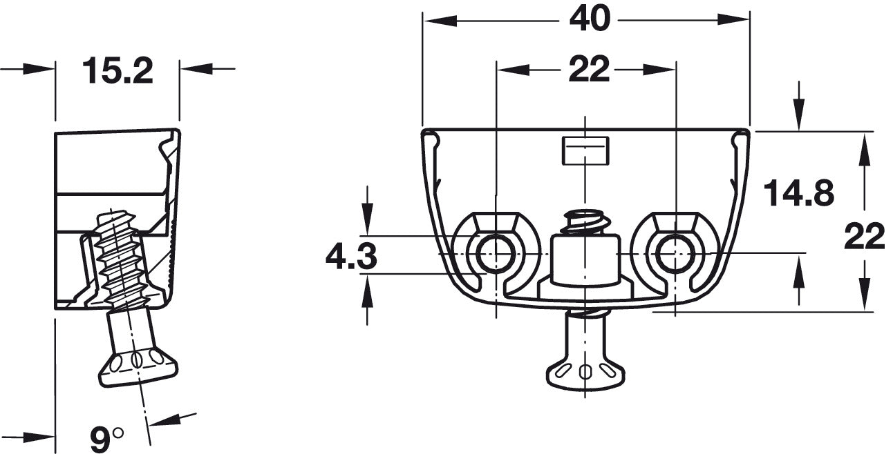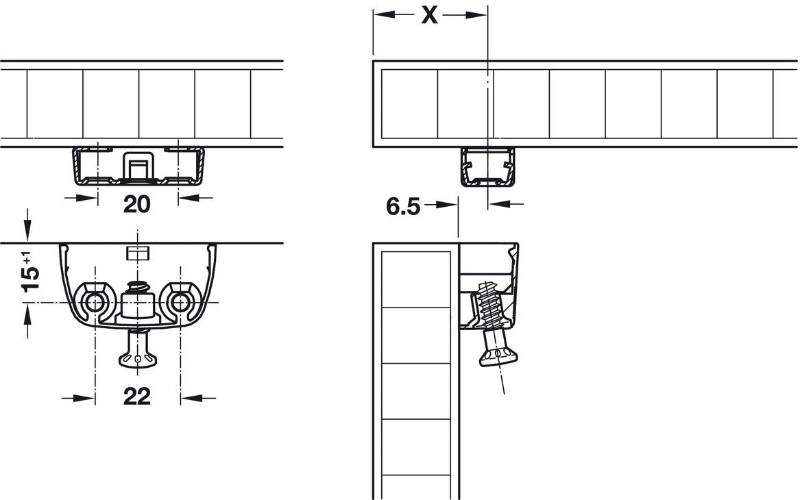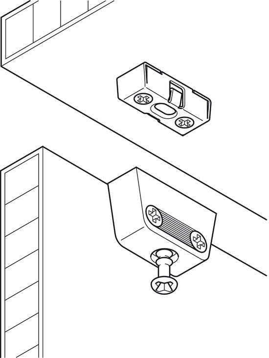 Screw fixing clip cabinet connector RV with tolerance compensation Fastens panels together by push fitting the two elements together Final adjustment with pre-mounted screw, tightened with a screwdriver - size PZ 2cordless drill/driver with bit or cross slot blade screwdriver