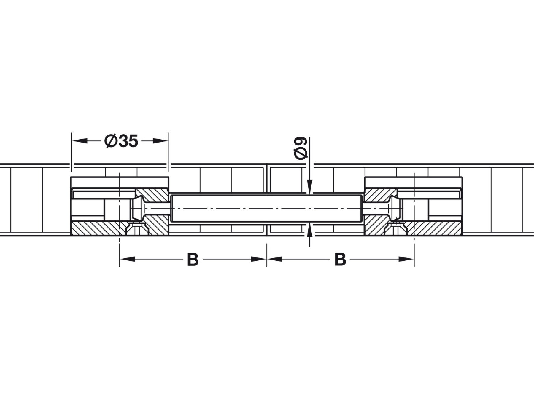 For double sided installation through Ø 10 mm holes