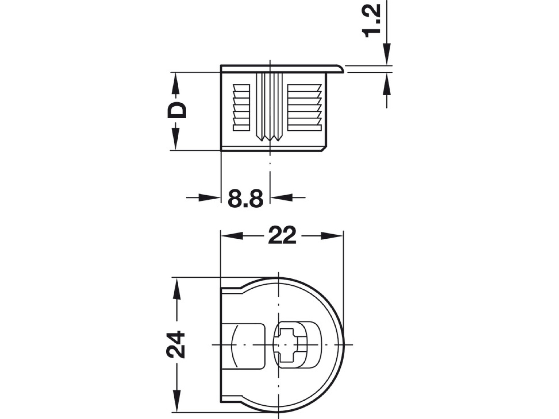 With tightening element, With ridge, for wood thickness from 16 mm, dim. A 8.0 mm, drilling depth X 12.7+0.2, nickel plated