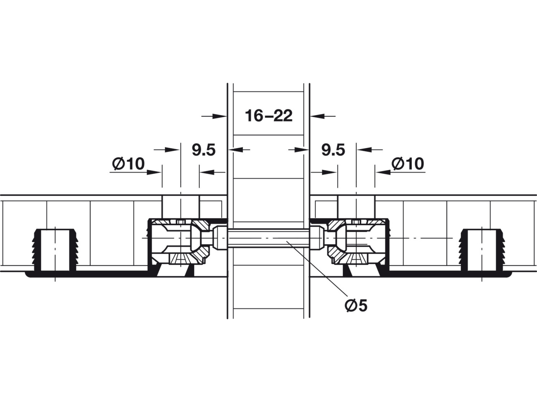 Optional drill hole Ø 10 mm from above if connector is to be tightened from above.