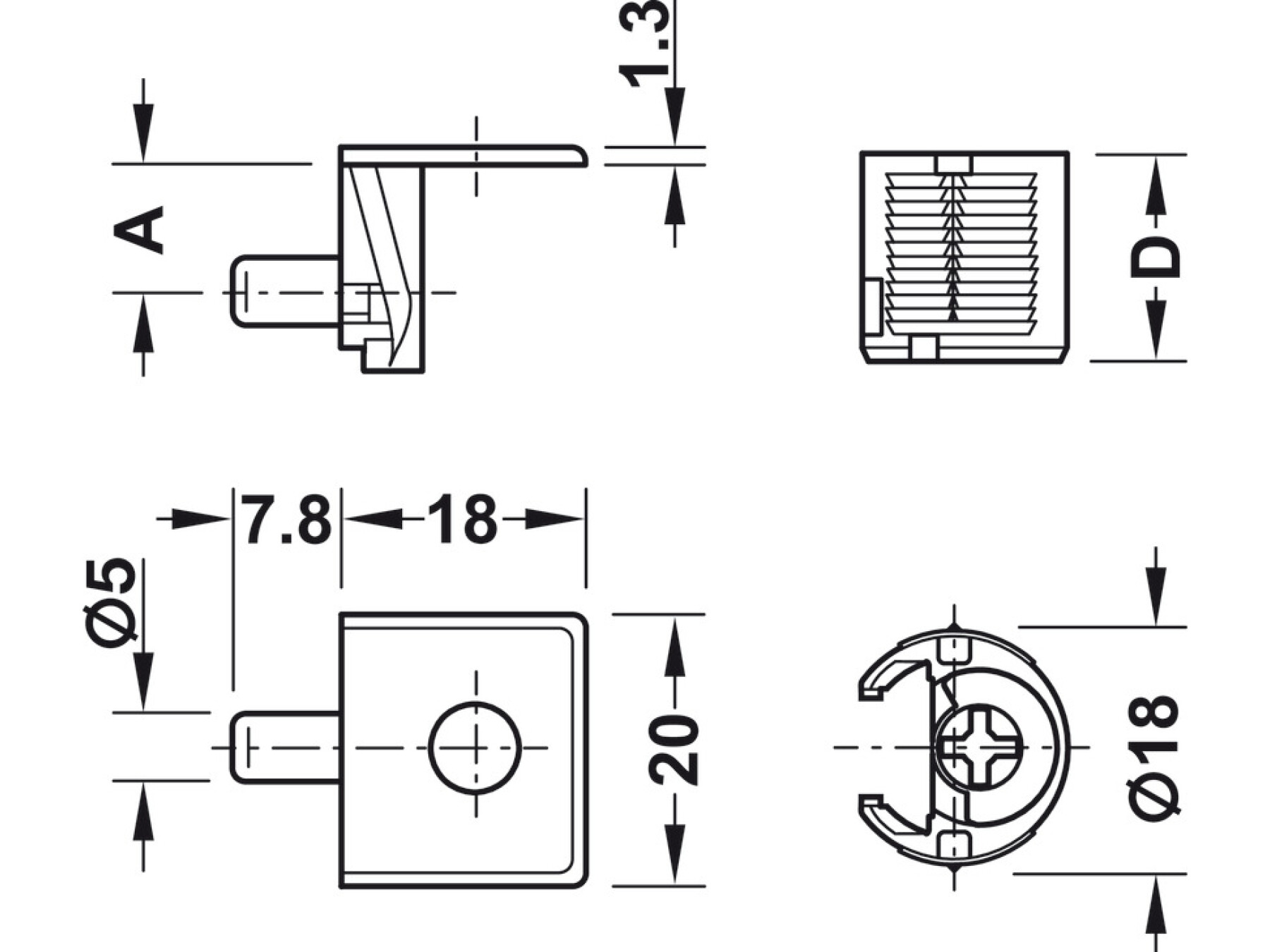 Tab 18 Shelf Connector 16mm Plug ZA NP