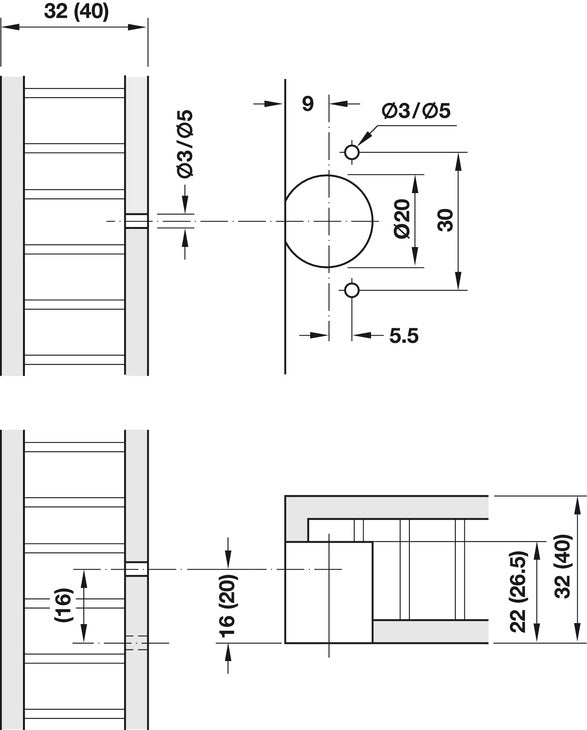 • Drilling depth D: 26.5 mm
