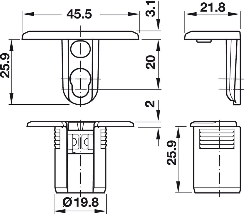 • Material: Support and tightening element: Zinc alloy Boss insert: Plastic