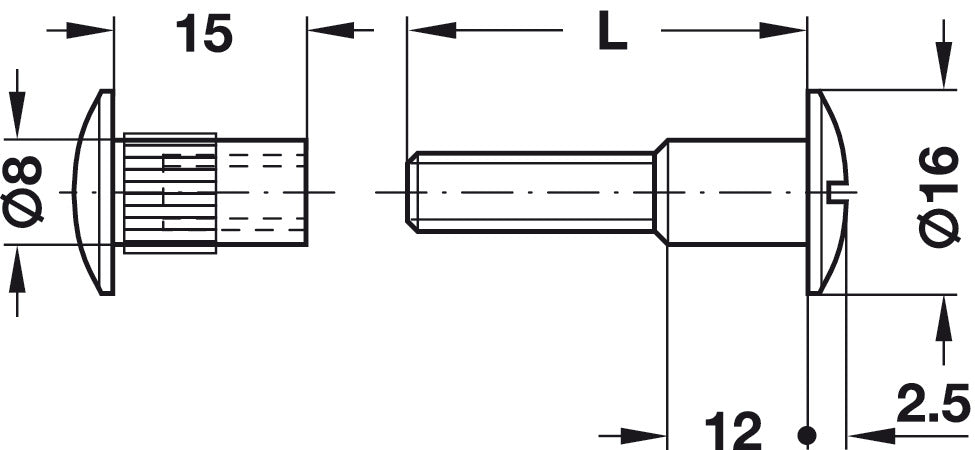 - Connecting Screw, Complete Fitting, with M6 Thread, for Ø 8 mm Hole