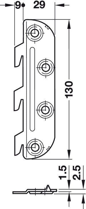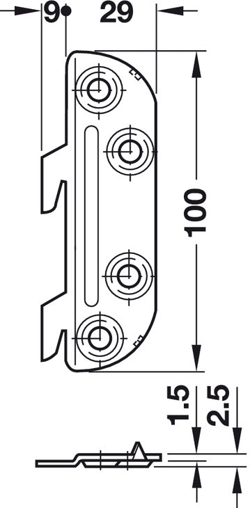 - Depth: Strike plate 9 mm, hook in plate 2.5 mm