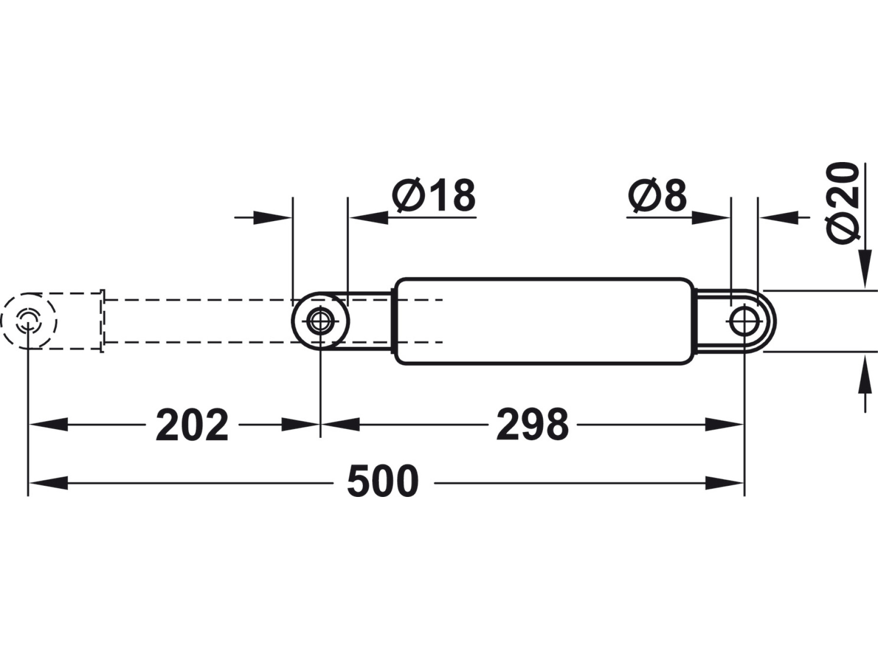 Example: 2 gas-filled struts each for 100 kg must be ordered for a bed weight of 100 kg.