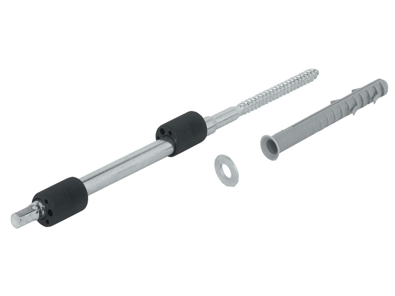 Support bolt with eccentric sleeve, wood-screw thread and wall plug